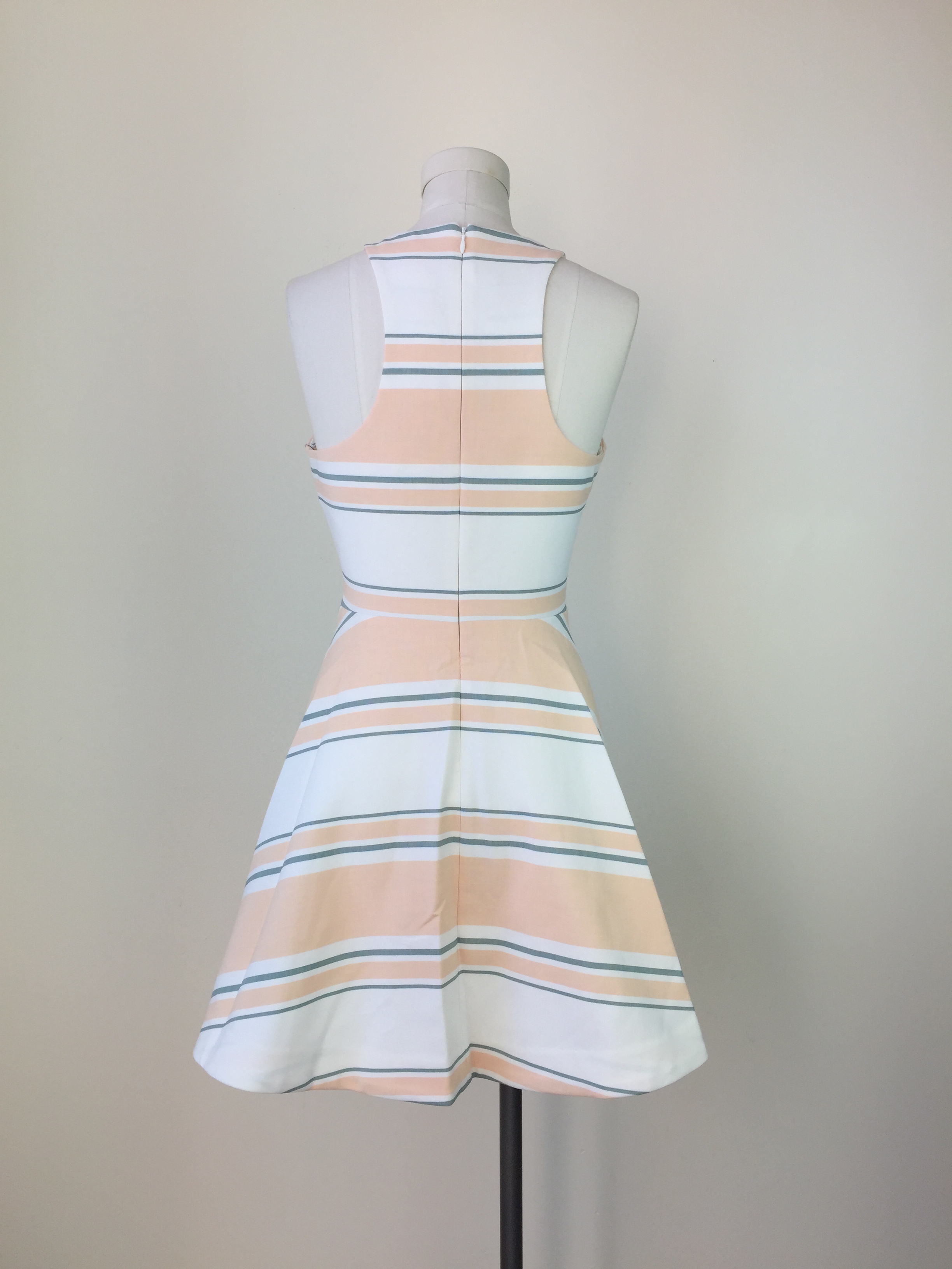 - Concealed zipper with hook and eye closure in back