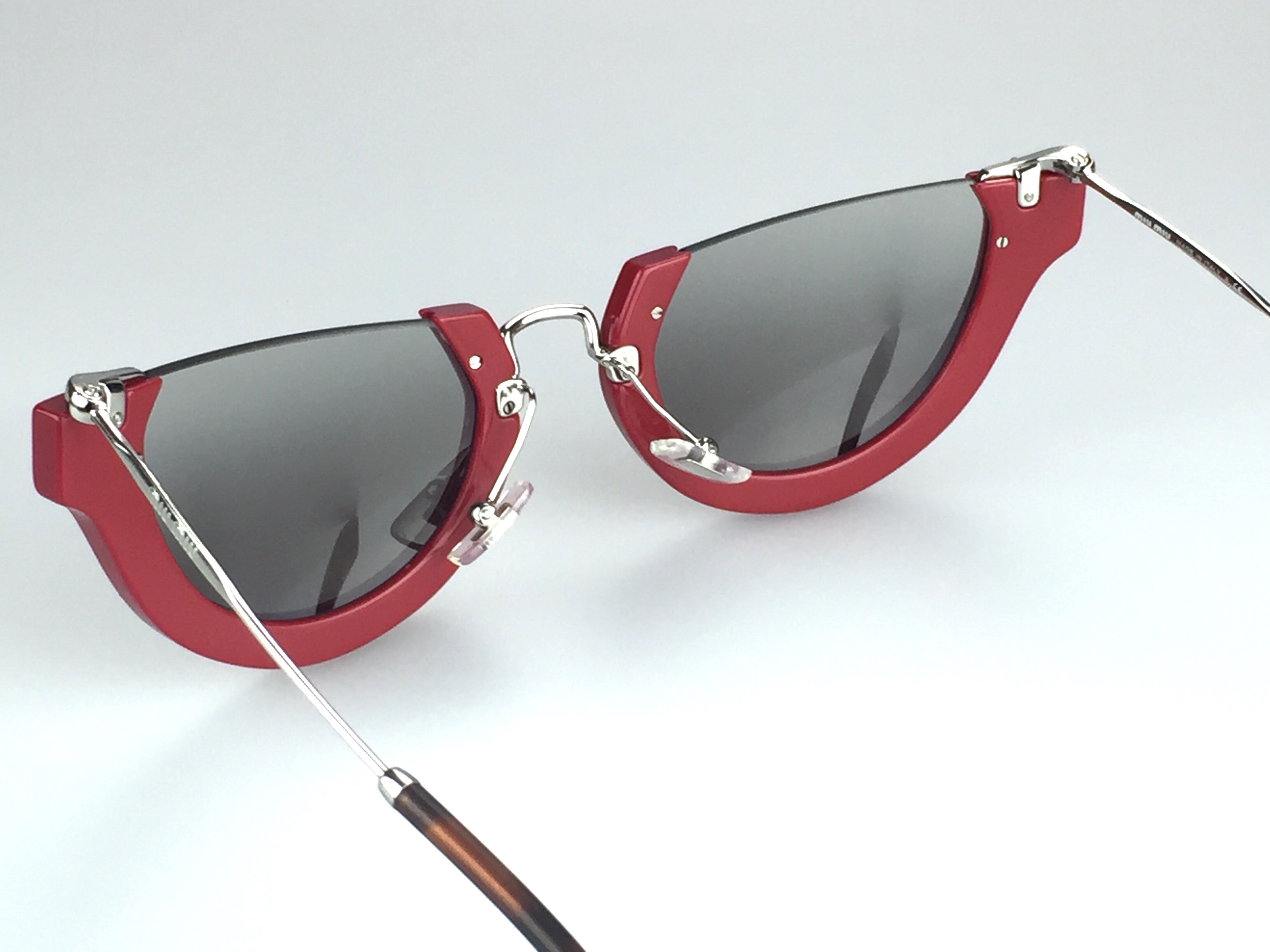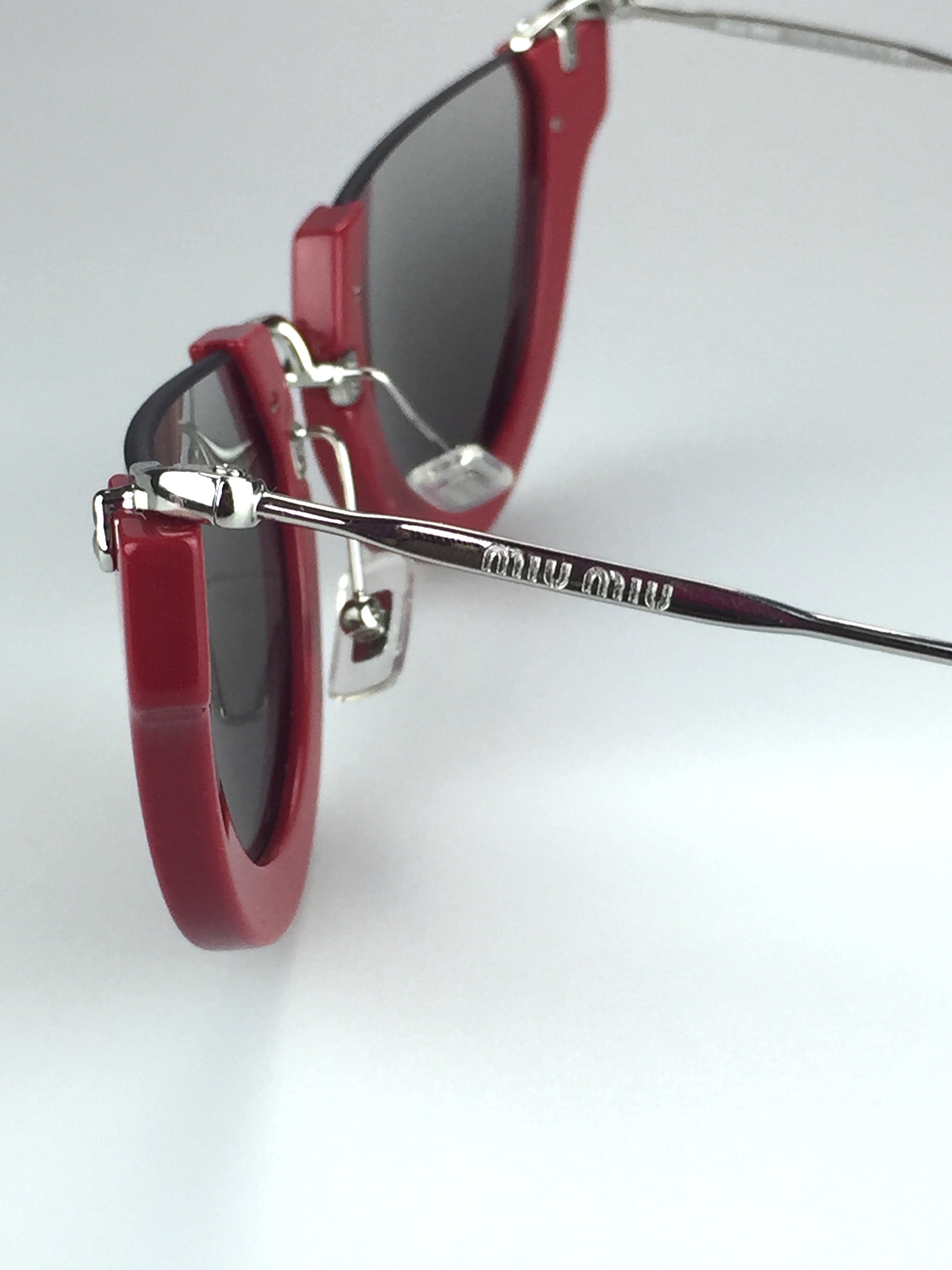 - Red acetate semi-rimless frames with silver tone metal contrast
