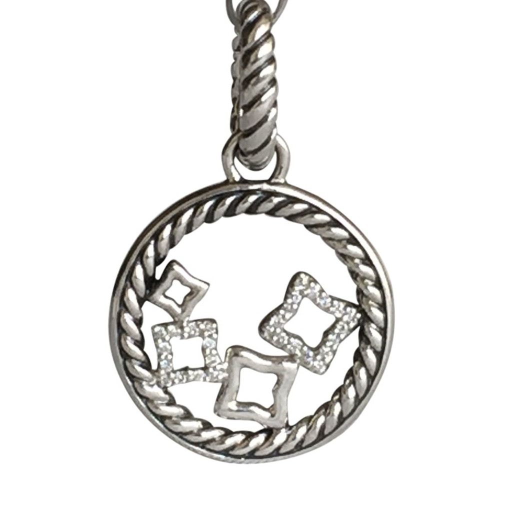 DAVID YURMAN Sterling Silver Tapestry Quartrefoil Charm/Pendant With Diamonds