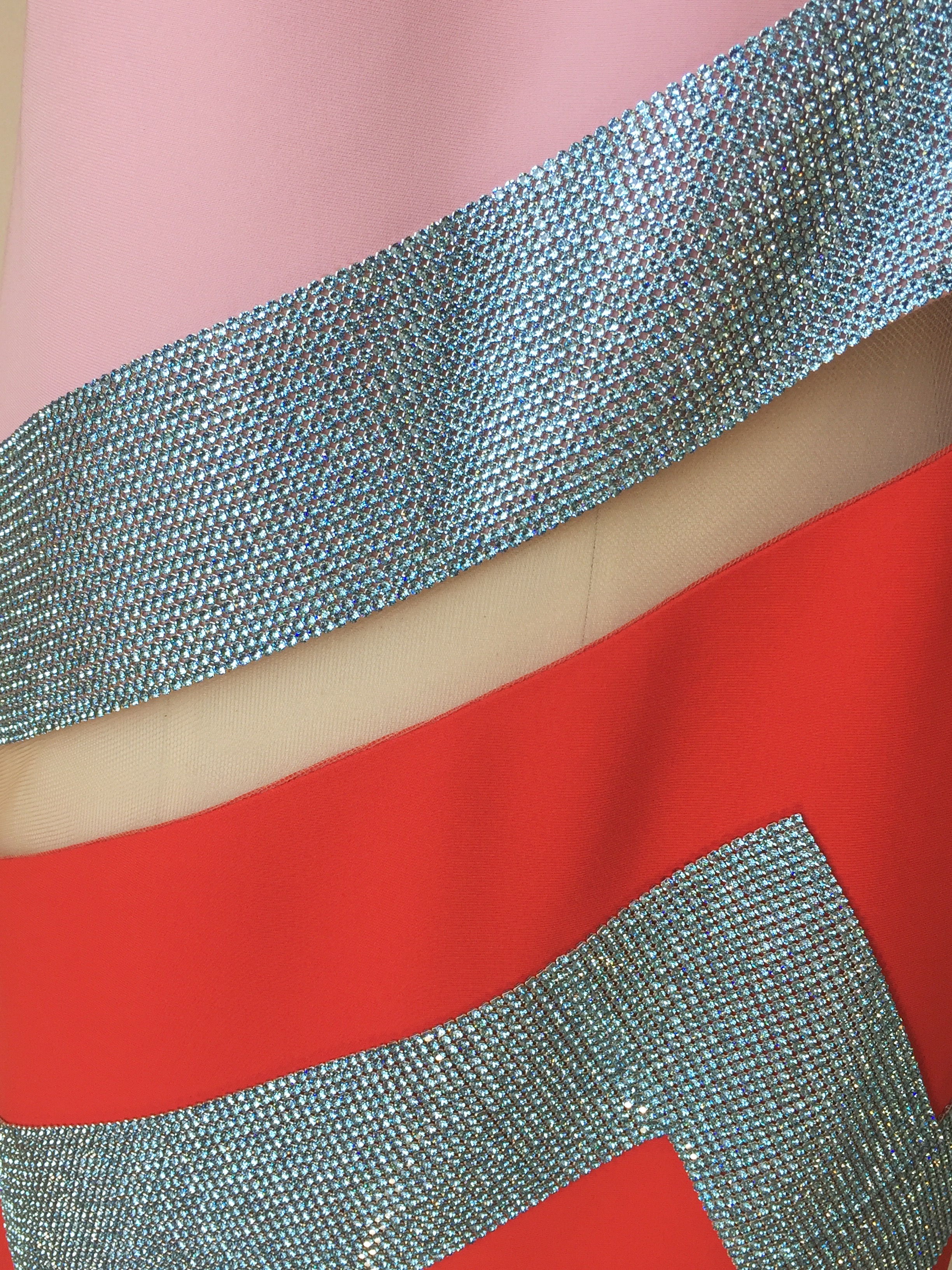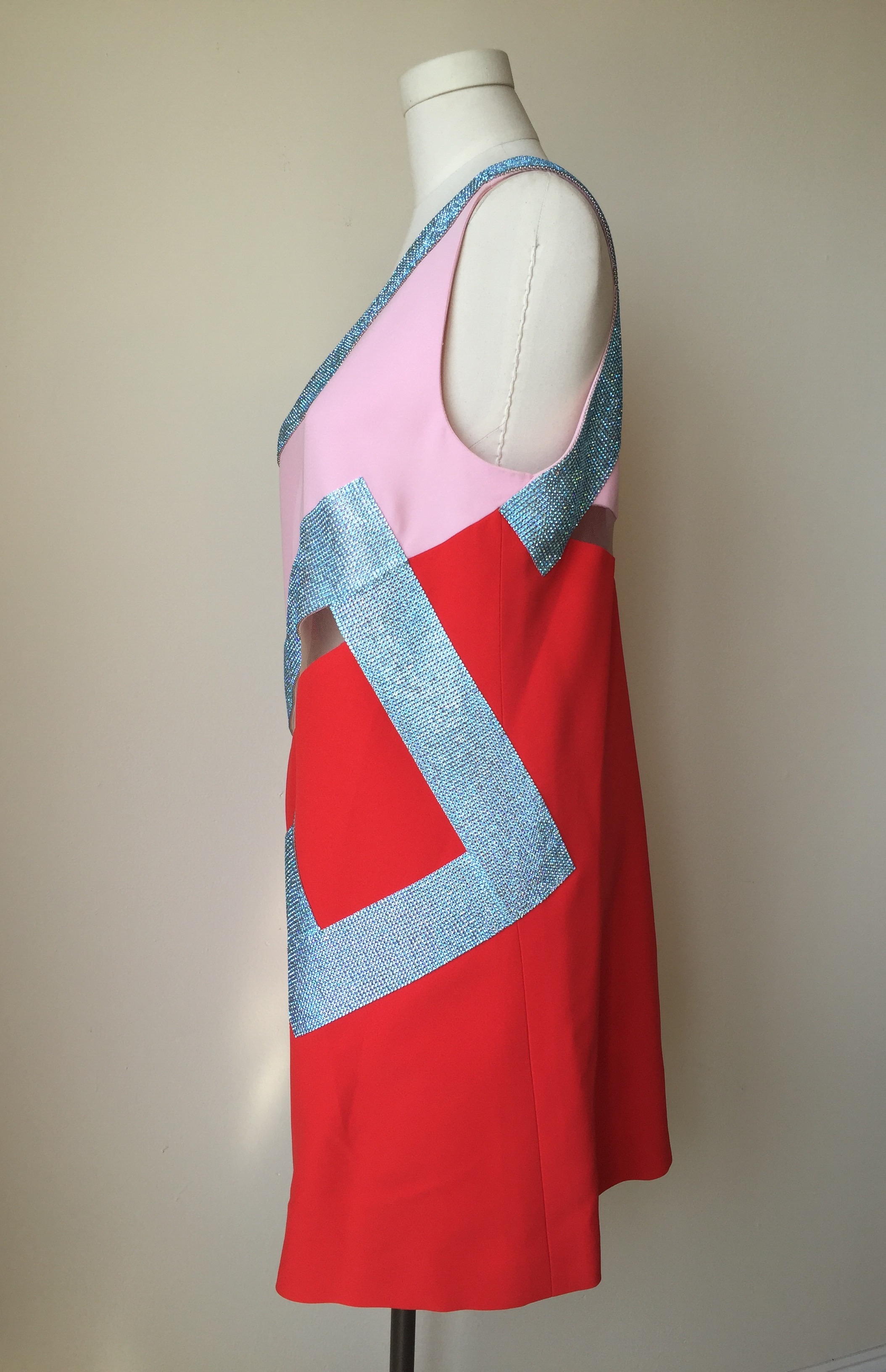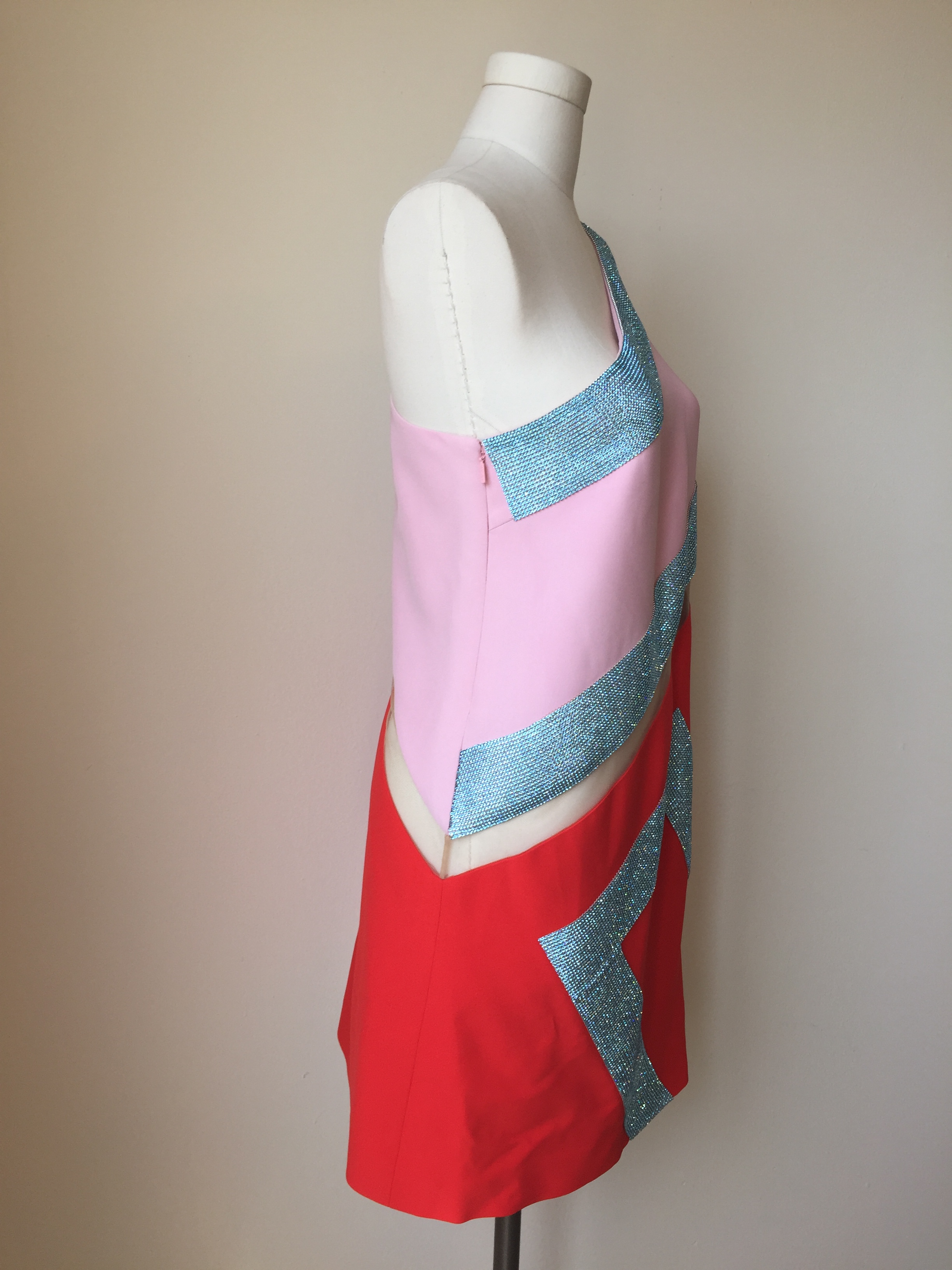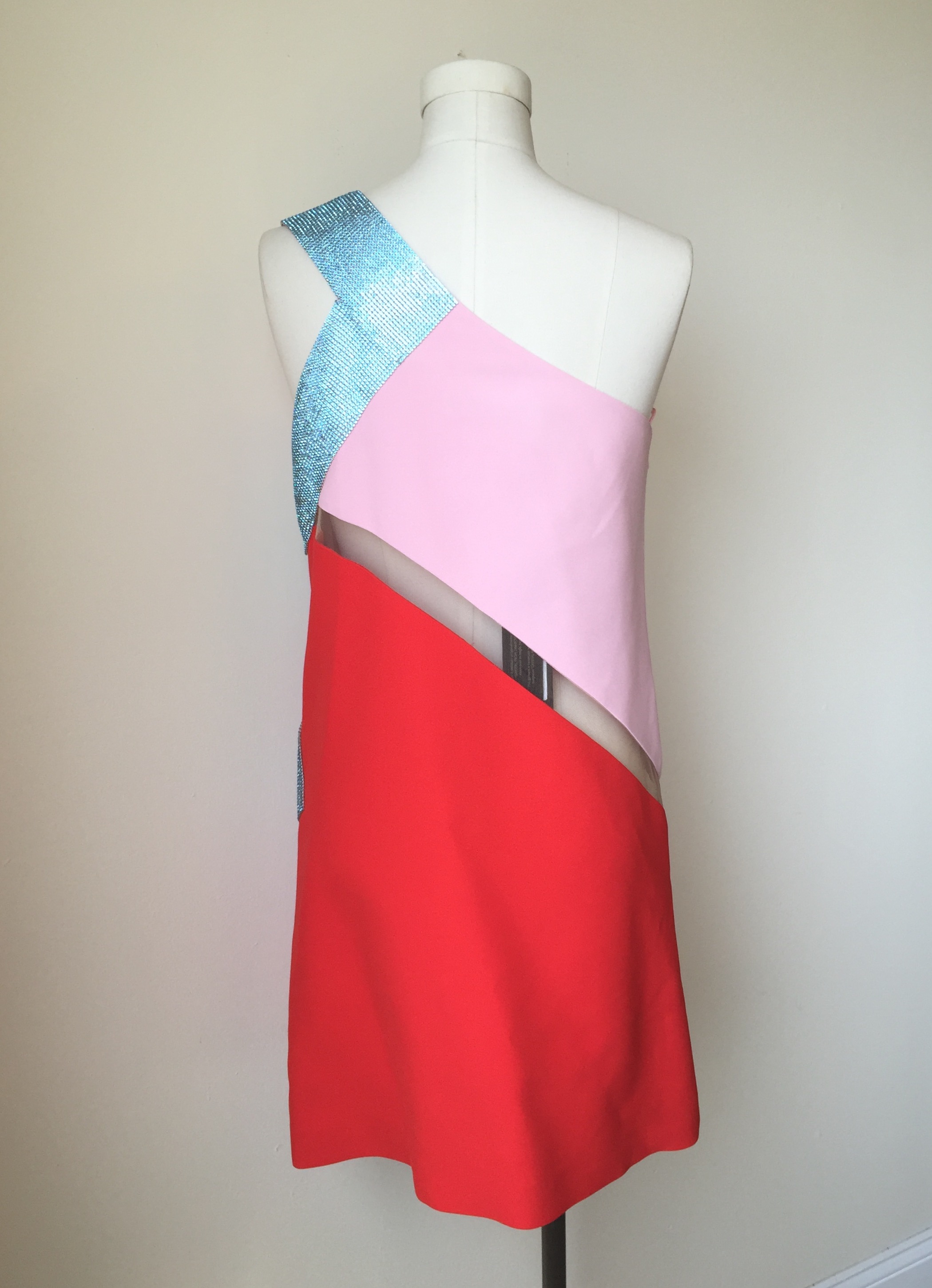 VERSACE Silk & Swarovski Crystal Asymmetric Colorblock Mini Shift Dress