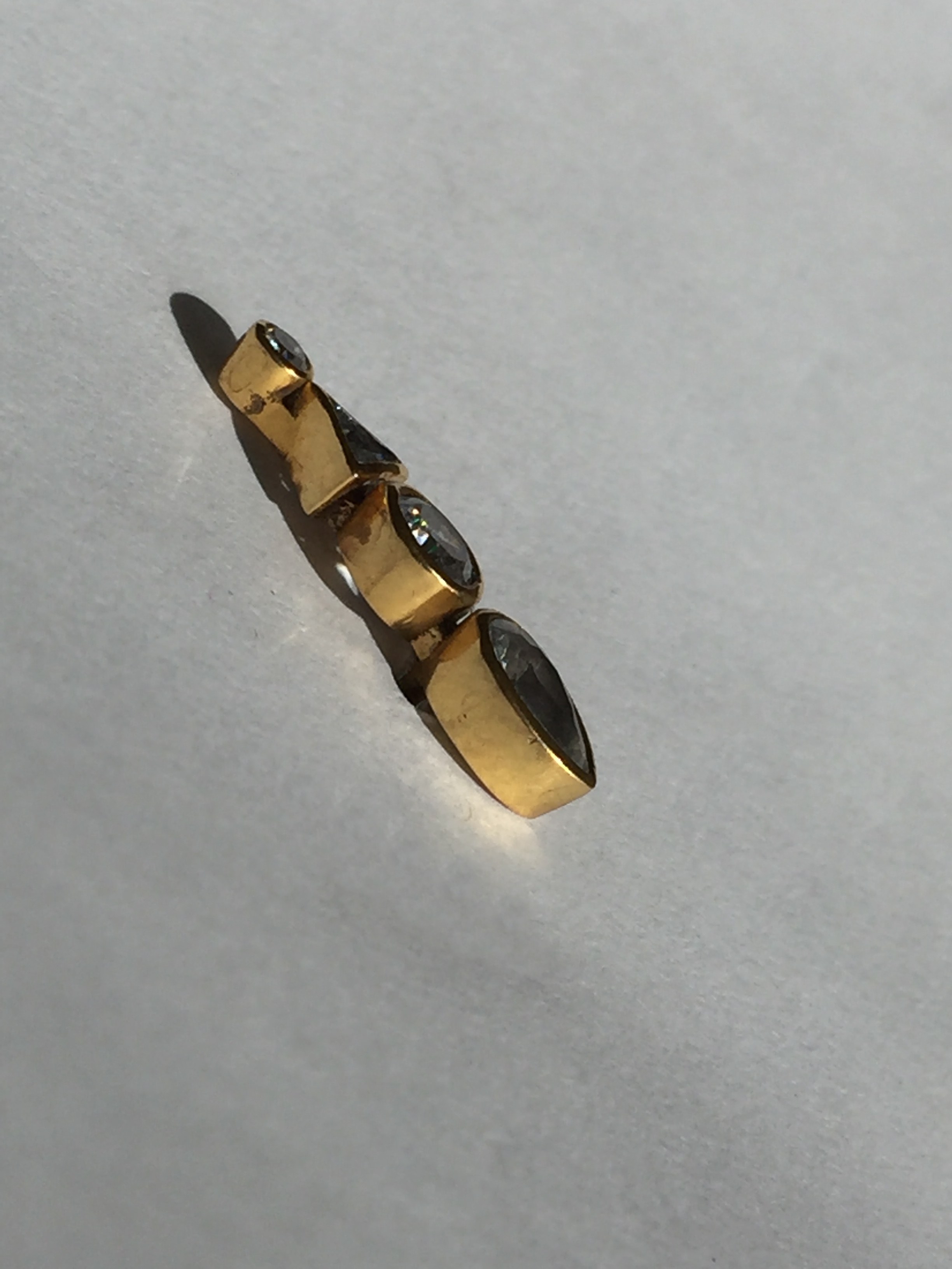 - Ear pin features multi-shaped stones: teardrop, round and triangle; approx. 3/4" long
